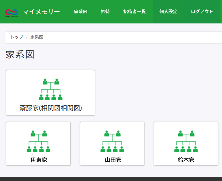 - 家系図がシェアできる「マイメモリー」