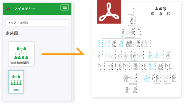 PDFデータ化された家系図の閲覧や、PDFファイルで