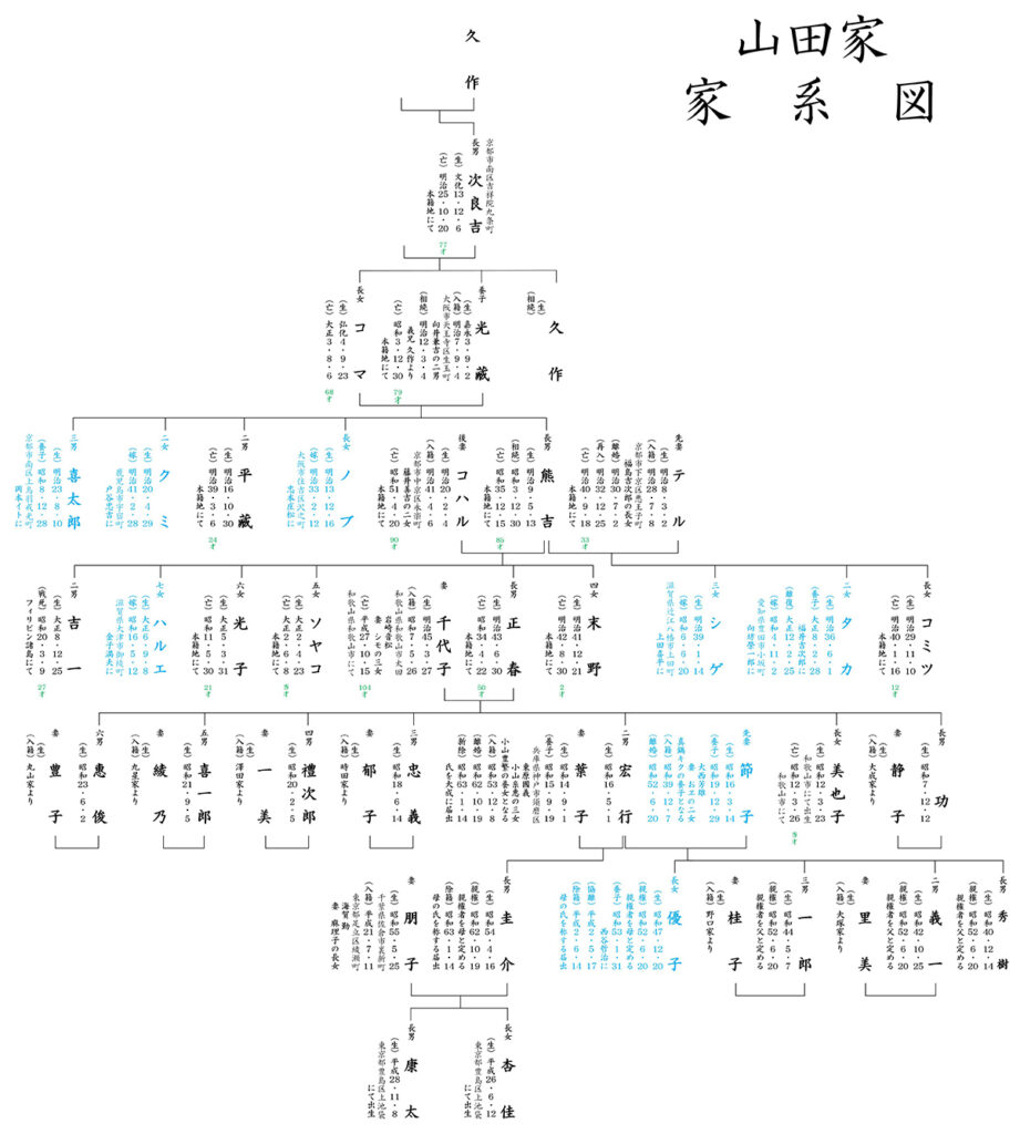 32系統は、父母や祖父母のような直系のみを辿って家系図を作る方法で、およそ5代前までさかのぼることができます。