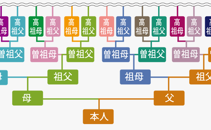 直系先祖の名前のみを記載した簡易家系図を
